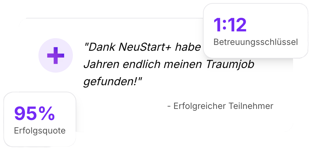 "Als Langzeitarbeitsloser hatte ich große Zweifel. Das NeuStart+ Team hat mir gezeigt, dass ein Neuanfang möglich ist. Heute arbeite ich wieder in meinem Traumberuf."